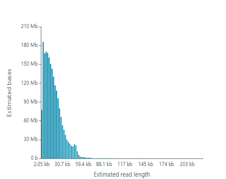 | Fig 1. Results of Read Length Histogram of Estimated Bases | Fig 2. Results of cumulative output reads |