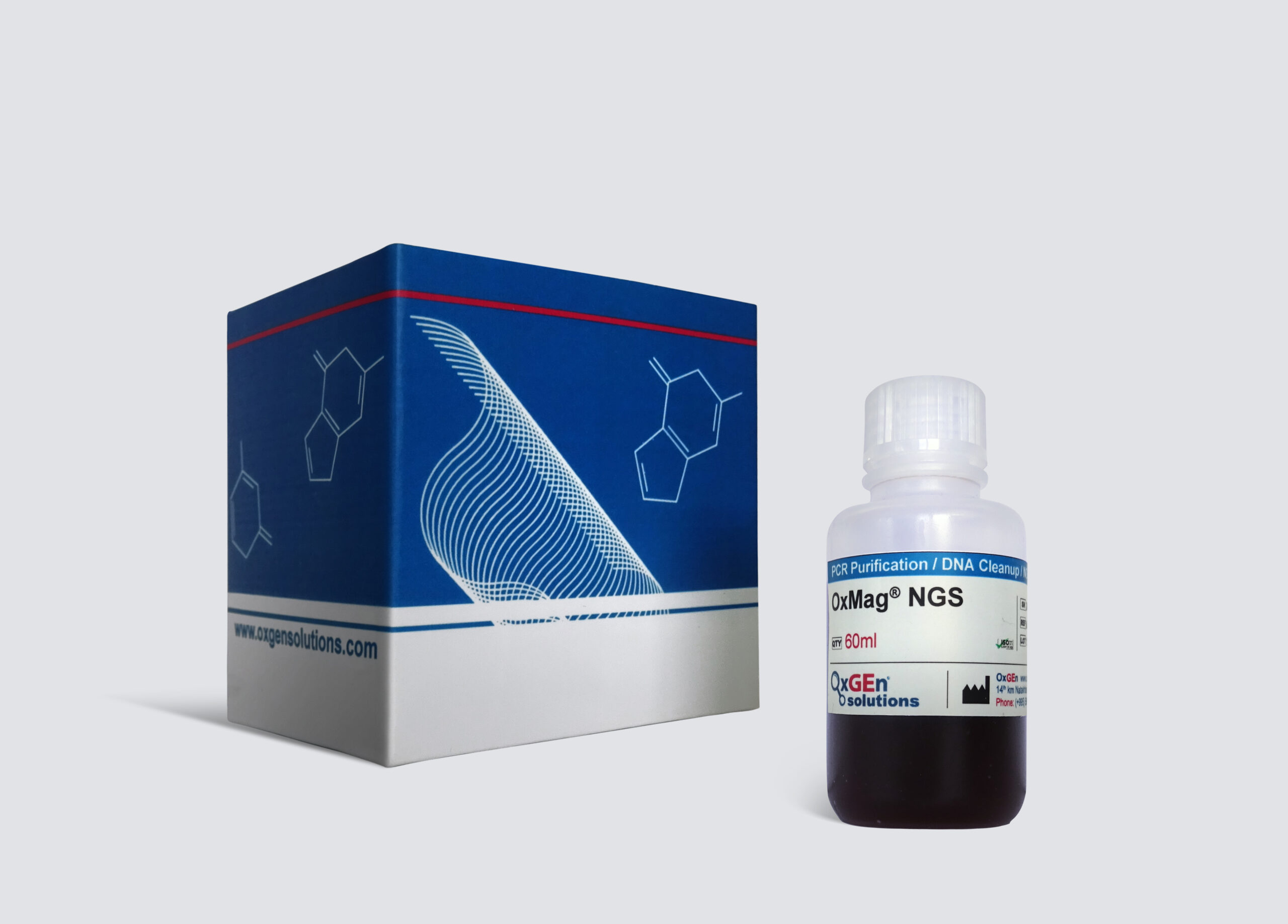 The OxMag® NGS Solution utilizes solid-phase reversible immobilization (SPRI) paramagnetic bead technology for high-throughput purification of PCR amplicons. The OxMag® NGS Solution utilizes an optimized buffer to bind DNA selectively fragments 100 bp and larger to paramagnetic beads. Excess primers, nucleotides, salts, and enzymes can be removed by simply washing. The result is a more purified PCR product. Using a tailored OxMag® NGS Solution, DNA fragments of 100 base pairs and above are captured explicitly by the beads, allowing excess primers, nucleotides, salts, and enzymes to be removed through a straightforward washing process. This process yields PCR products of increased purity. The OxMag® Beads for PCR purification, DNA, and NGS cleanup offer an alternative solution to AMPure XP bead Technology.