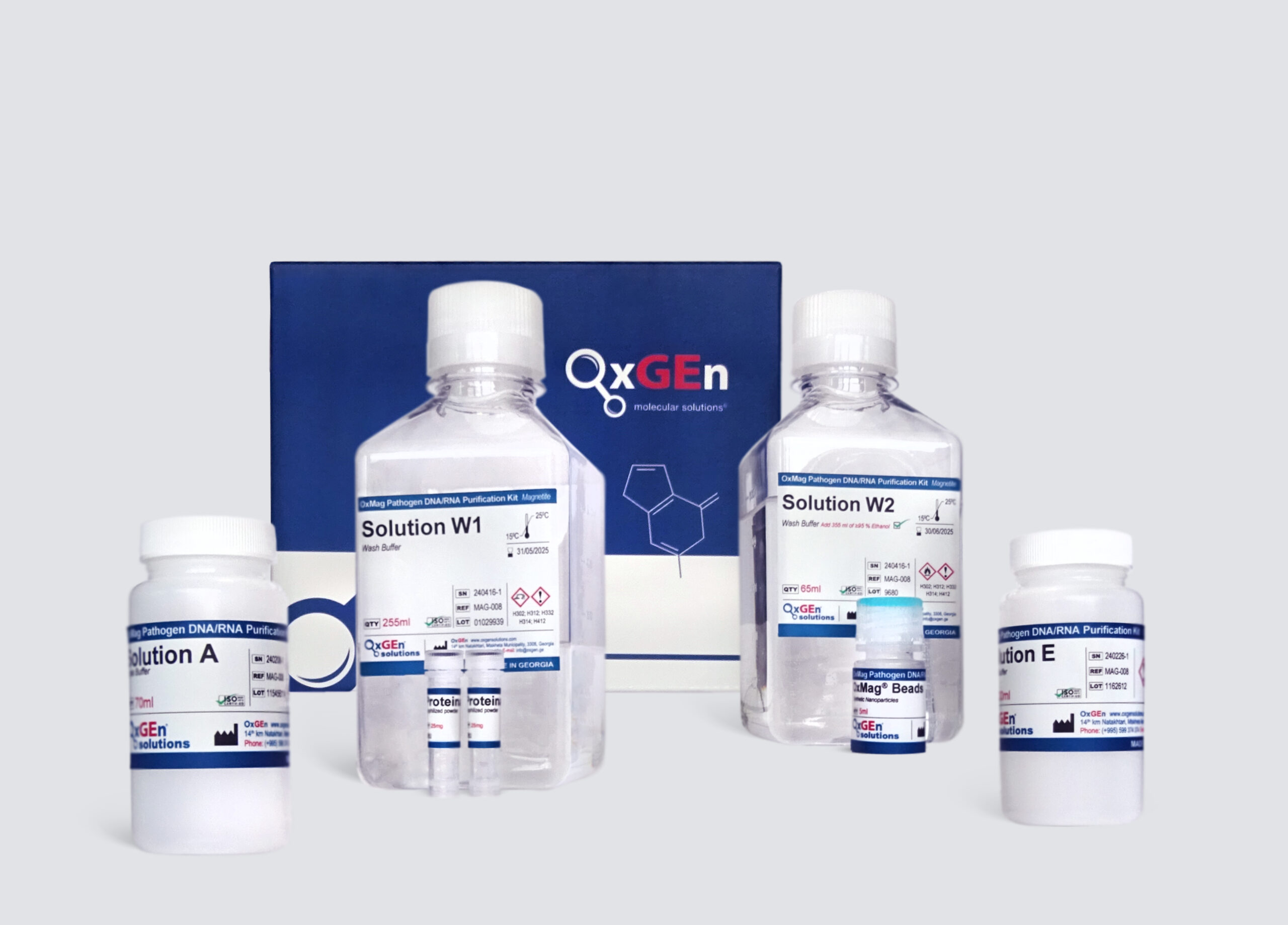 The OxMag Pathogen DNA/RNA Purification Kit enables rapid, efficient extraction of total nucleic acids from bacteria, fungi, and viruses in diverse clinical and environmental samples, including swabs, biofluids, stool, milk, and water. Optimized for microbiome research, it supports high-throughput workflows with minimal handling, ensuring speed, simplicity, and low contamination risk. Its analytical performance and sensitivity were validated in laboratory and clinical settings under EU Regulation 2017/746 for in vitro diagnostic devices.
